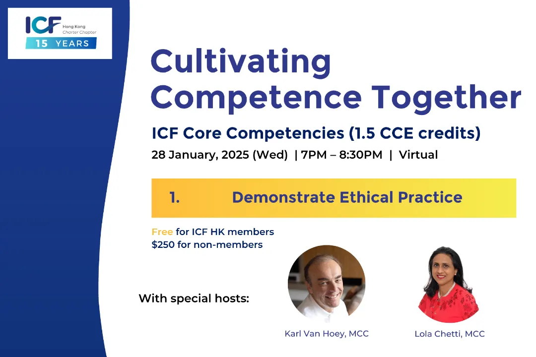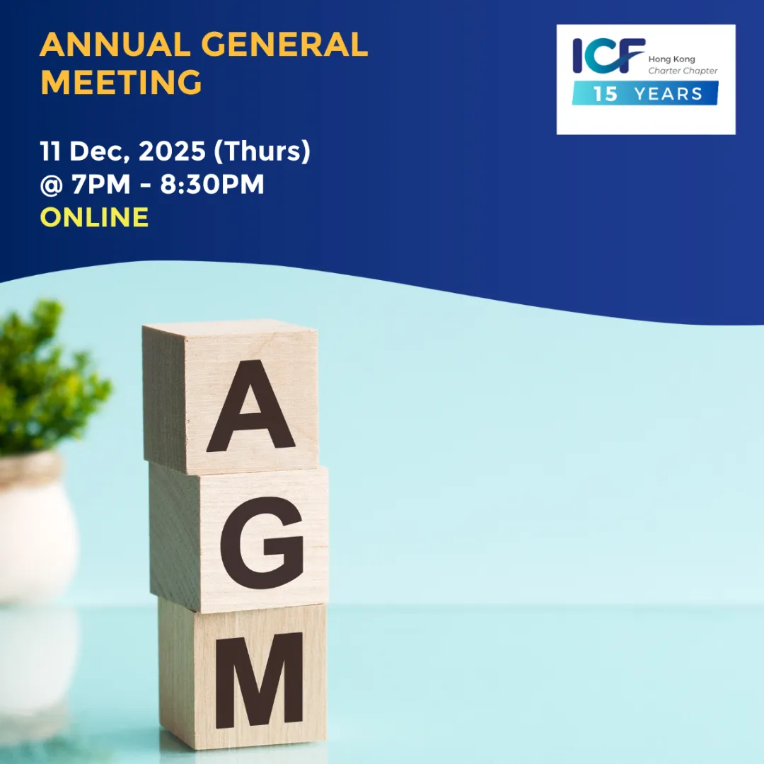 We are the Hong Kong chapter of the International Coach Federation, the preeminent network for professional coaches working in business coaching, life coaching, executive coaching, team coaching , leadership and many other specialistations, representing over 50,000 coaches worldwide.